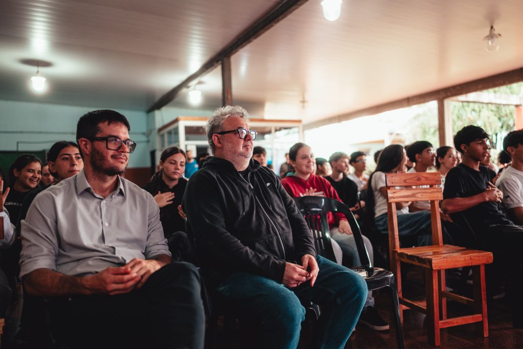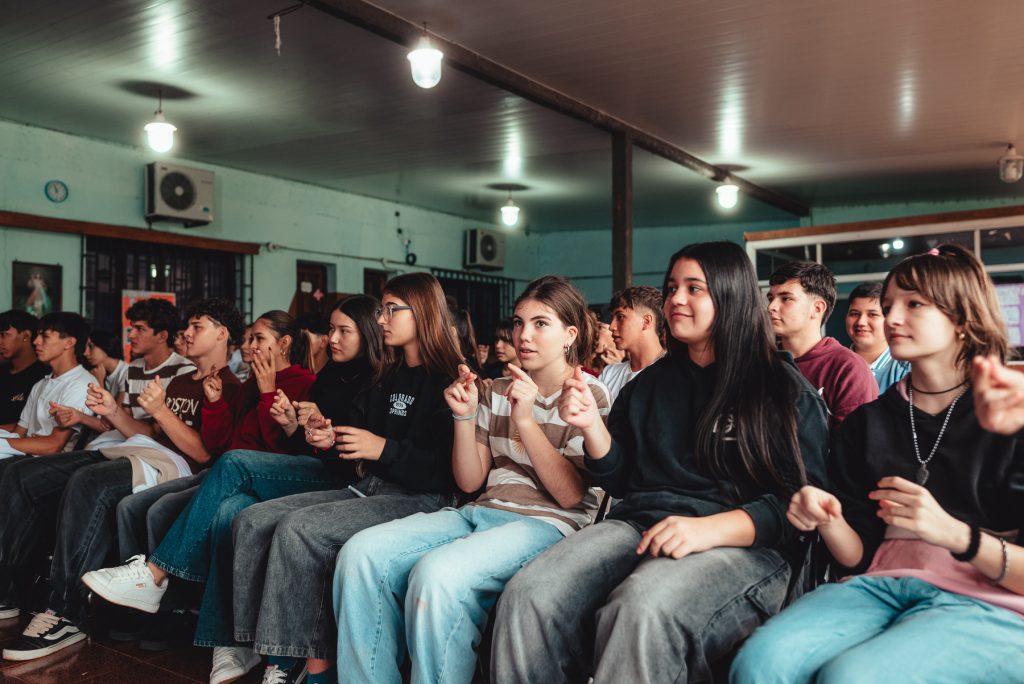 Ubicada en el kilómetro 40 de la ruta provincial Nº 4, la Escuela de la Familia Agrícola (EFA) 1004 Santa Teresita es una institución que a lo largo de sus 38 años de existencia, consolidó en Leandro N. Alem y sus zonas de influencia, un modelo educativo estrechamente ligado a la realidad socioeconómica y cultural de la región. El pasado viernes, el establecimiento recibió a una gran delegación de la Secretaría de Estado de Cultura, enmarcados en el programa “Cultura en Movimiento en las Escuelas”. Se trata de un proyecto que, junto al Servicio Provincial de Enseñanza Privada de Misiones y a otros organismos del estado busca llevar a las escuelas los elementos culturales e identitarios más representativos de nuestra provincia. Desde la Secretaría, brindamos una charla sobre Residuos Reciclables y acercamos el programa «EcoCanje Verde» de la mano del Subsecretario de Economía Circular, Fernando Santacruz.