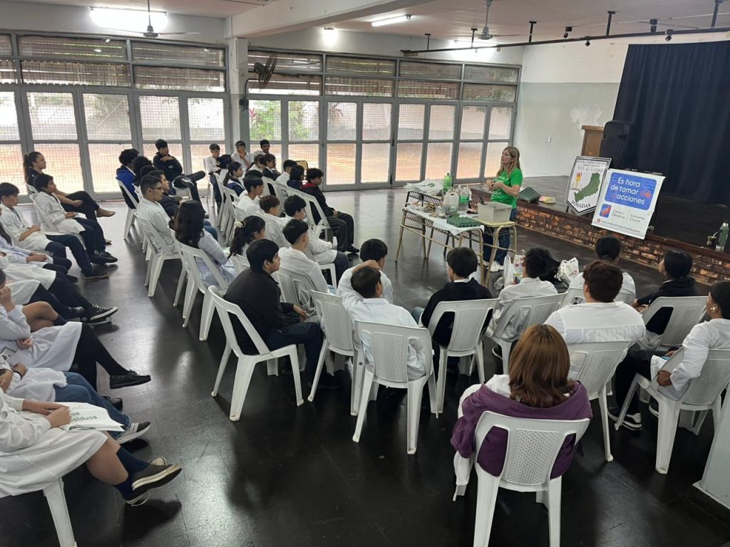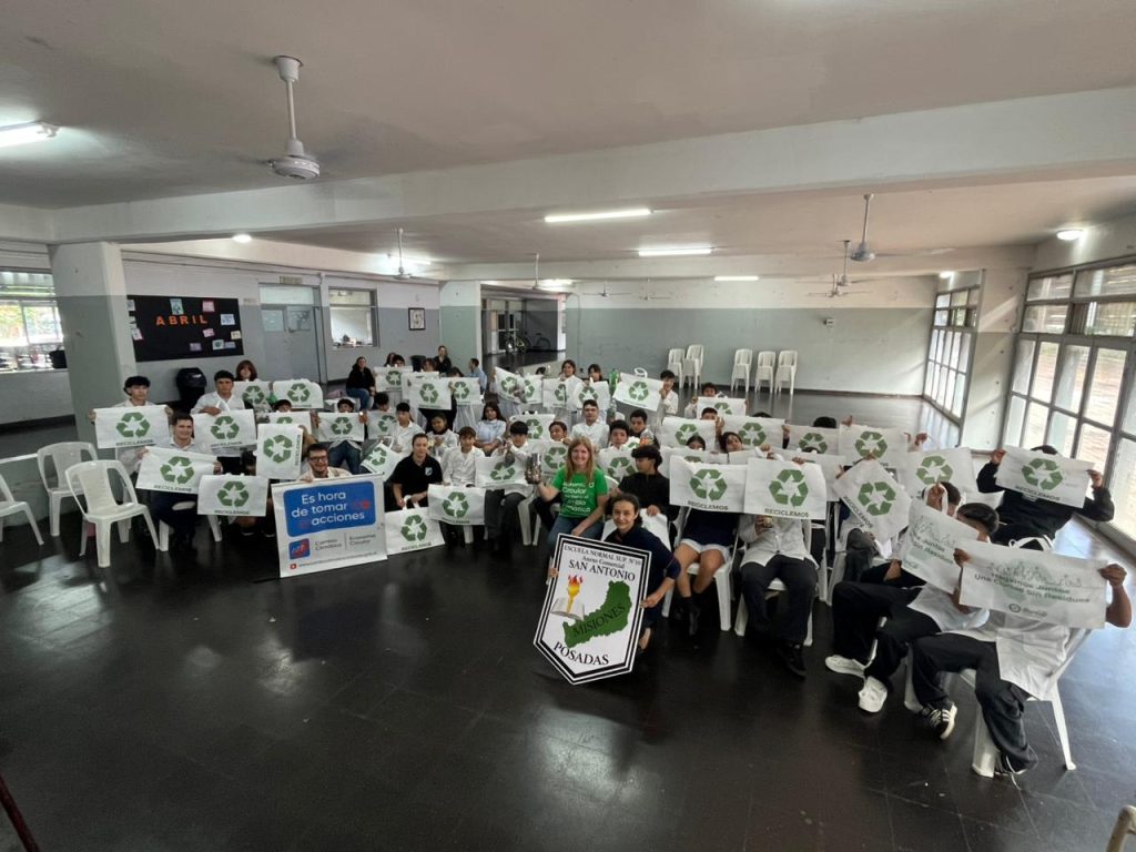 Cerrando las actividades del mes, se capacitó a estudiantes del 1año de Secundaria de la escuela Normal 10, de la ciudad de Posadas. Más de 40 estudiantes aprendieron sobre los beneficios de separar residuos Orgánicos de residuos Reciclables, el impacto que tiene en la cadena de la economía circular local y herramientas que podrán replicar en sus hogares.